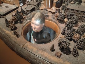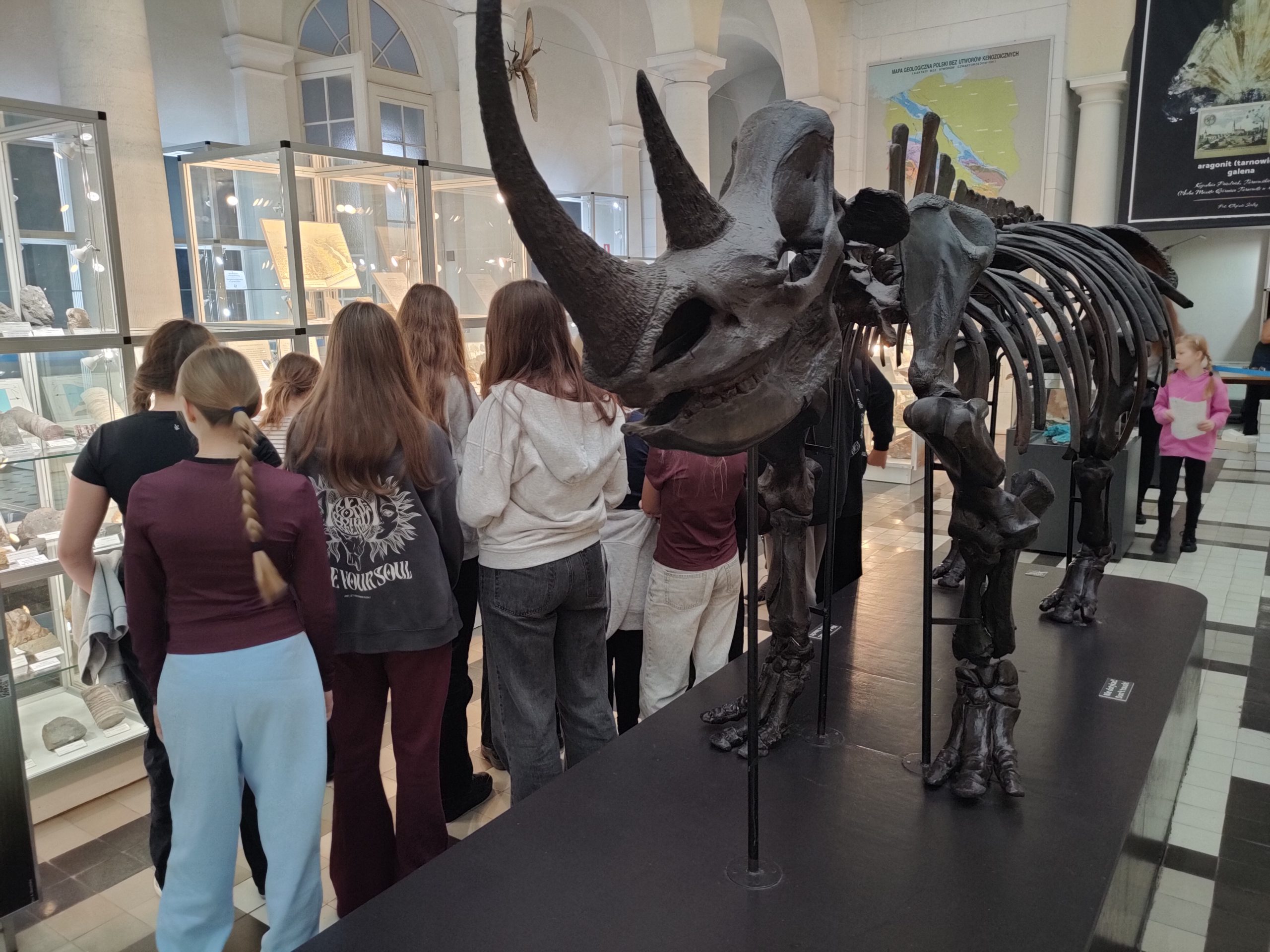 My postawiliśmy tym razem na muzea i park rozrywki, do których jeszcze nigdy wcześniej nie jeździliśmy. Zaczęło się od zwiedzania obiektu o bardzo długiej nazwie – Muzeum Geologicznego Państwowego Instytutu Geologicznego – Państwowego Instytutu Badawczego przy ulicy Rakowieckiej, zlokalizowanego w pięknym zabytkowym budynku. Mogliśmy tam poznać historię życia na naszej planecie, oglądać skały, minerały i pierwsze organizmy żywe. Dzieciaki stanęły oko w oko z dilofozaurem sprzed 193 milionów lat, podziwiały szkielet mamuta, z ciekawością badały czaszki pierwszych człekokształtnych. Dzięki przewodnikom, którzy oprowadzali je po muzeum, spotkanie okazało się cenną lekcją przyrody.