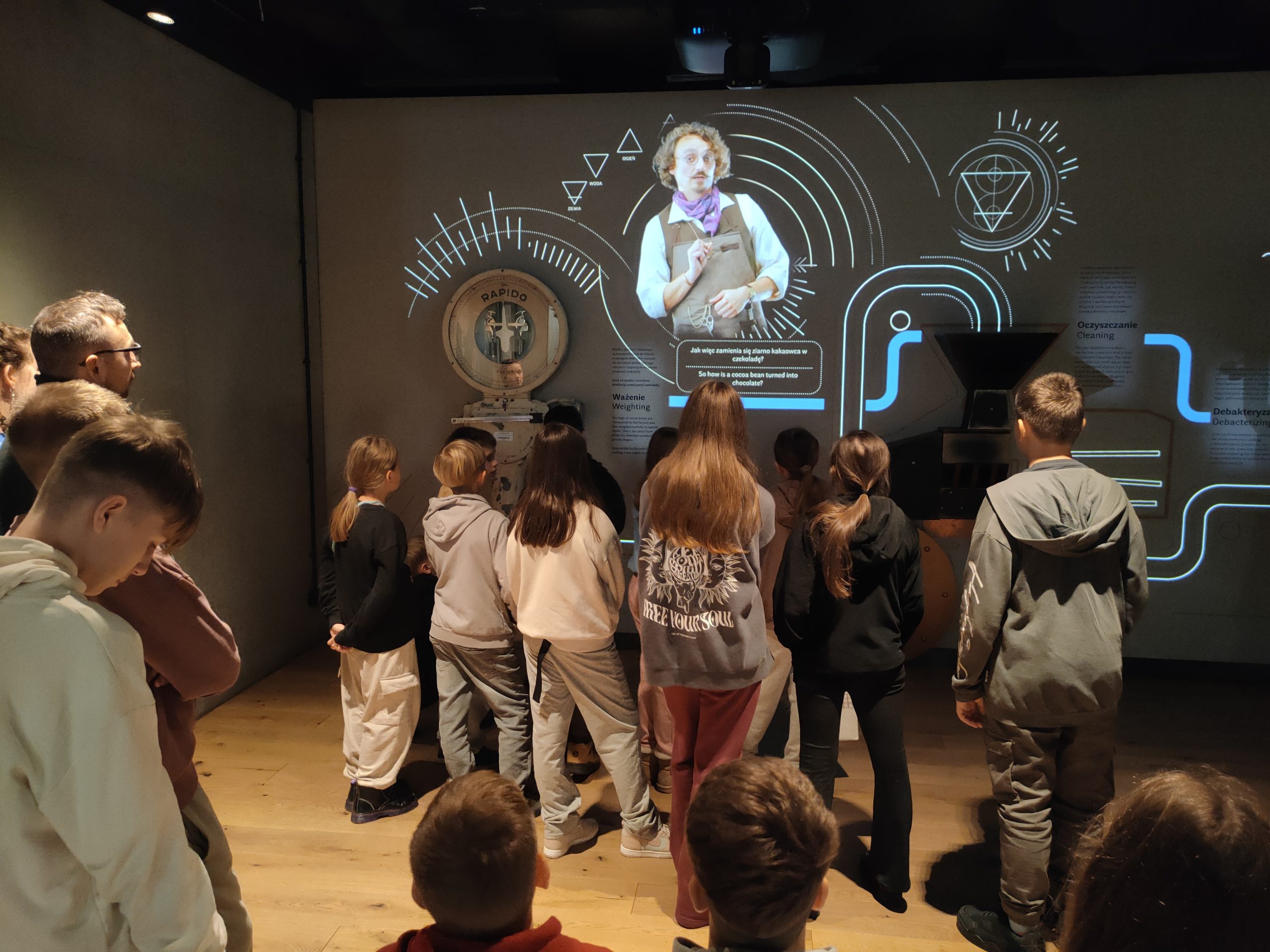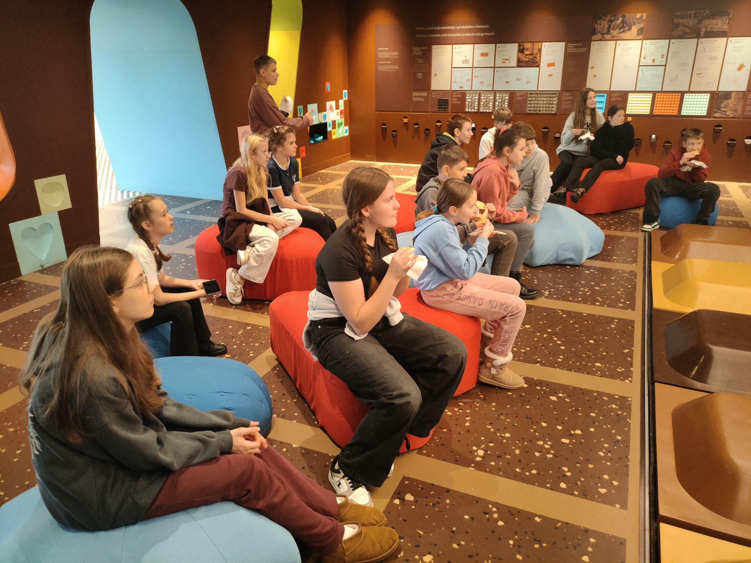 Po wizycie na Rakowieckiej autobus zawiózł wszystkich do słodkiego Muzeum Fabryki Czekolady Wedel. Tam, prócz historii najważniejszej fabryki słodkości w Polsce, dzieciaki miały okazję poznać smaki i zapachy różnych gatunków wedlowskiej czekolady, a także ziaren kakaowca, miazgi kakaowej i innych półproduktów w procesie wytwarzania łakoci. Na koniec obejrzały ogromną czekoladową makietę przedstawiającą fabrykę Wedla i inne budynki w dzielnicy. To chyba najsłodsze muzeum, w jakim kiedykolwiek były.