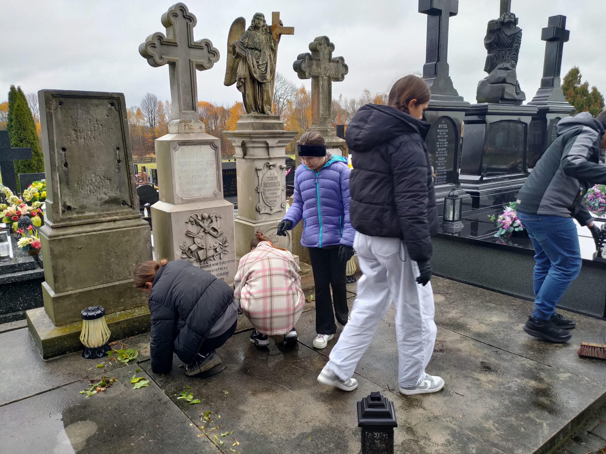 Właśnie po to 29 października cmentarz parafialny w Oleksinie odwiedzili nasi uczniowie pod opieką nauczycieli i pana dyrektora. Oczyścili grobowiec rodziny Suchodolskich, gdzie spoczywa patron naszej szkoły, złożyli kwiaty, zapalili znicze. Potem przyszła kolej na groby nieznanych żołnierzy oraz grób pana Wiktora Zięby – dawnego dyrektora szkoły w Bojmiu – i pani Anieli Miernickiej – wybitnej pedagog, jaka uczyła przed laty w naszej szkole.