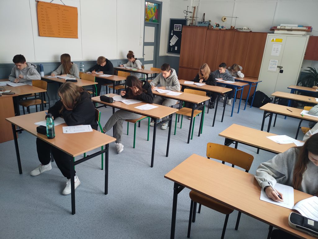 W ostatni poniedziałek 12 kwietnia klasa ósma rozpoczęła egzaminy próbne. Na pierwszy ogień poszedł język polski i z nim były związane największe emocje – po pierwsze dlatego, że otwierał „sesję egzaminacyjną”, po drugie dlatego, że wszyscy zastanawiali się, jakie lektury pojawią się w arkuszu. Potem były: matma – jak zwykle trudna – i język angielski, do którego po dwóch dniach pracy dzieciaki podchodziły już z większym dystansem.