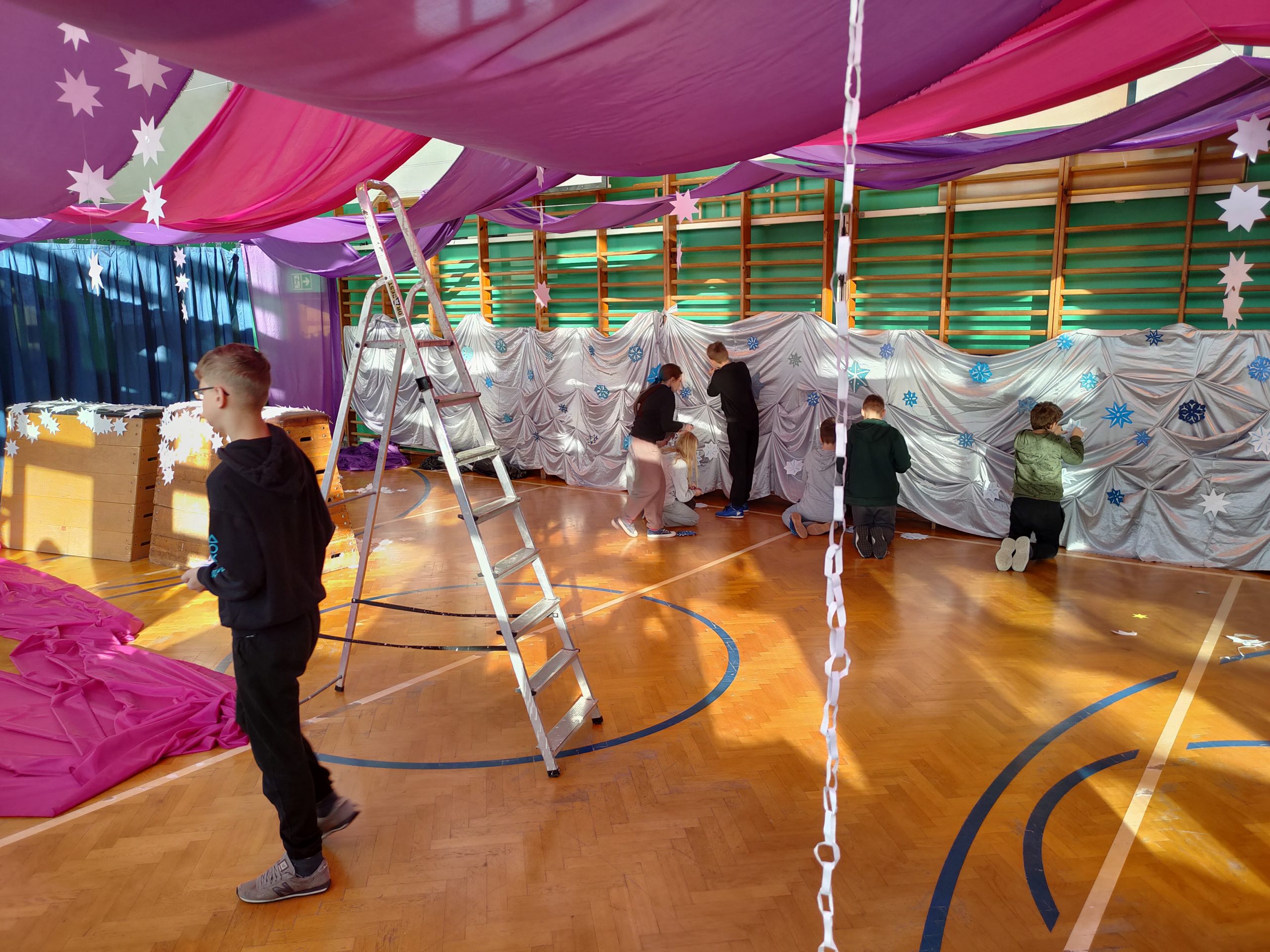 W przeddzień wielkiego szkolnego święta większość uczniów i spora część nauczycieli wzięła udział w przygotowaniach do zabawy choinkowej.