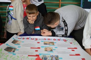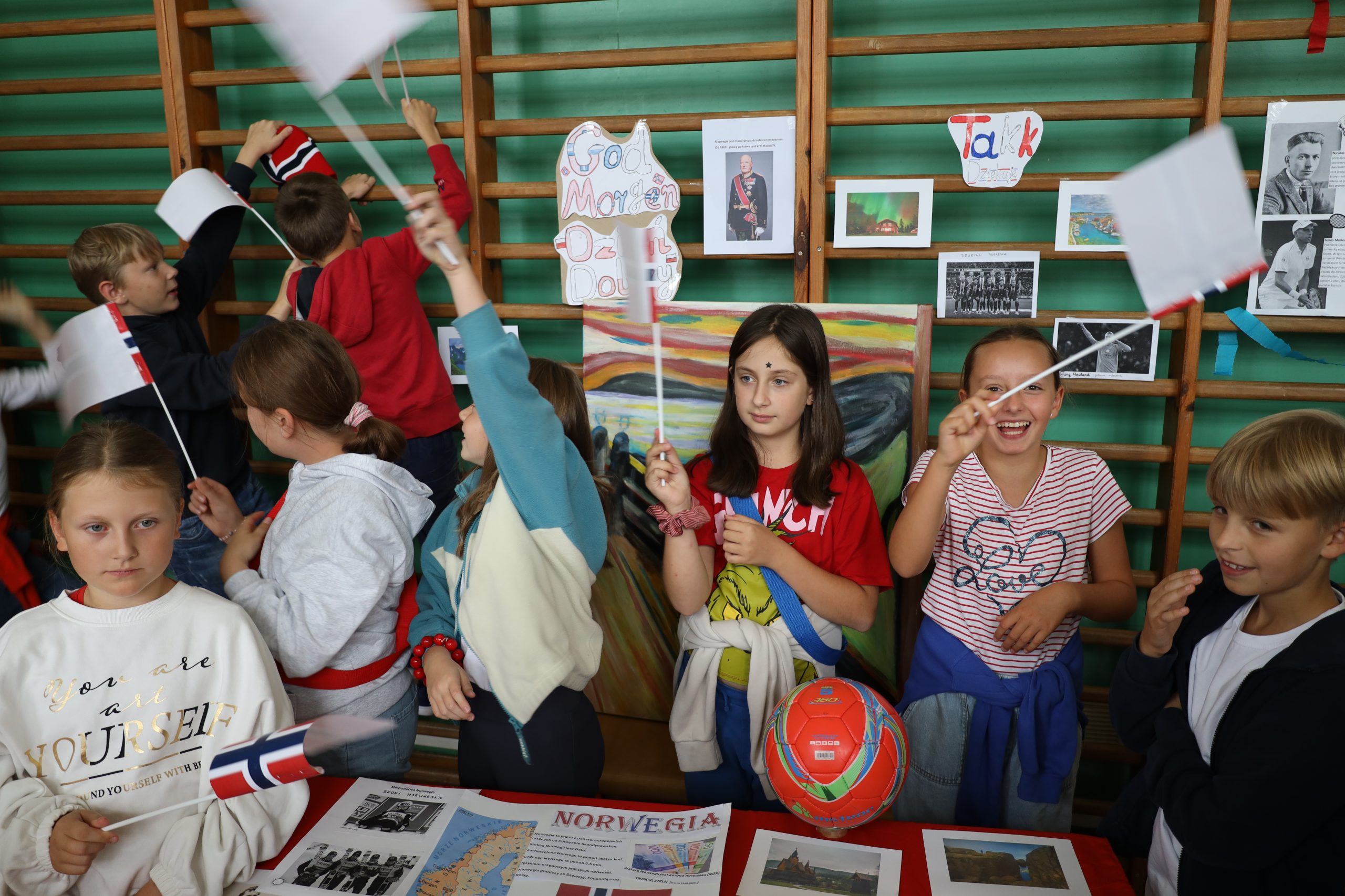 Uczniowie już od rana pod opieką pań Doroty Glinki i Agnieszki Oniśk tworzyli dekoracje w sali gimnastycznej. Potem rozpoczęły się przygotowania stoisk, na których każda z klas – od czwartej do ósmej – prezentowała jedno z wybranych państw Europy.